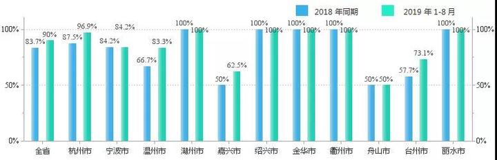 日前,浙江省美麗浙江建設(shè)領(lǐng)導(dǎo)小組生態(tài)文明示范創(chuàng)建辦公室(省美麗辦)通報了2019年1至8月全省污染防治攻堅戰(zhàn)重點工作進展情況。通報顯示,2019年1至8月,浙江省環(huán)境質(zhì)量持續(xù)改善,5項重點工作提前完成全省年度任務(wù),2項重點工作達到目標(biāo)要求。